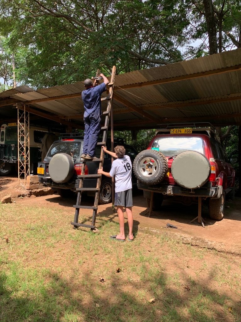 13.June. Motorbike maintenance with help from Hugo and lots of fundis. Plus, soccer training on Kilimanjaro.