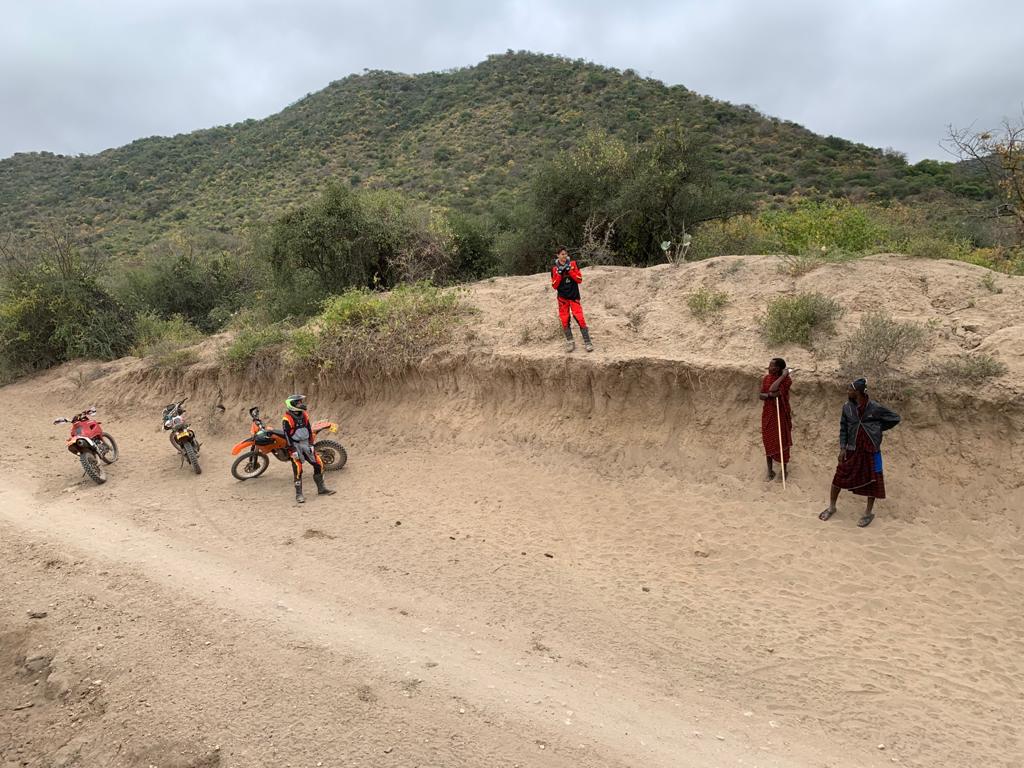 26. June. Motorbike ride to Lake Ambussel. This is a seasonal lake used by Maasai to graze their cattle during the month of May. Maasai migrate to that area when their is plenty of water and grass. It took us 8 hours of riding, one crash and one puncture to get there. Antonio was soon patched up, but the KTM 525 would have nothing more of the heat. Fredi and friends to the rescue!